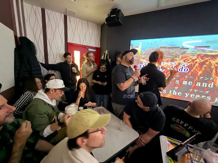 I didn’t have many concerns about bringing her, but I was still surprised by how it all went. She met a whole group of wonderful people from all over the world. She attended the panel I spoke on, practiced her English while tasting sake at an izakaya, and yes, she came along to karaoke.